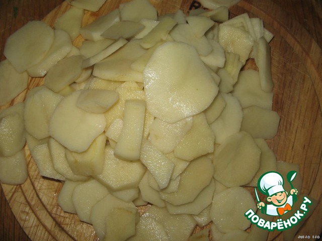 Картофель очистить, промыть, нарезать тонкими кружочками.