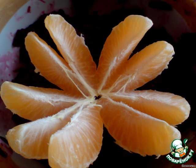 Получилось очень сочно и свежо! Мандариновые дольки приятно лопались во рту. :-D