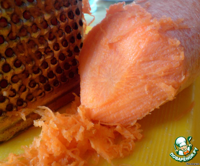 Сырую морковь натираем на мелкой терке.