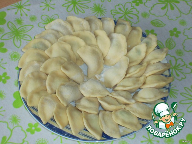 2 яйца, немного воды и мука (на глаз) 2-3 стакана - тесто должно быть упругое, но не слишком крутое.