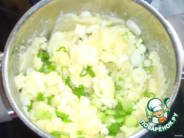 лук можно обжарить предварительно вместе с салом, а можно просто добавить в картофель вместе со сливочным маслом