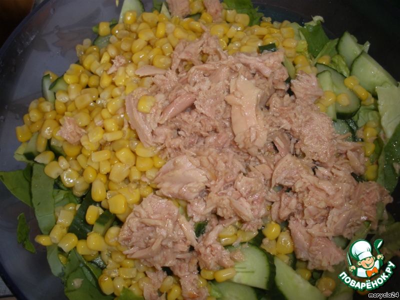 Открываем кукурузу и тоже добавляем в салат.