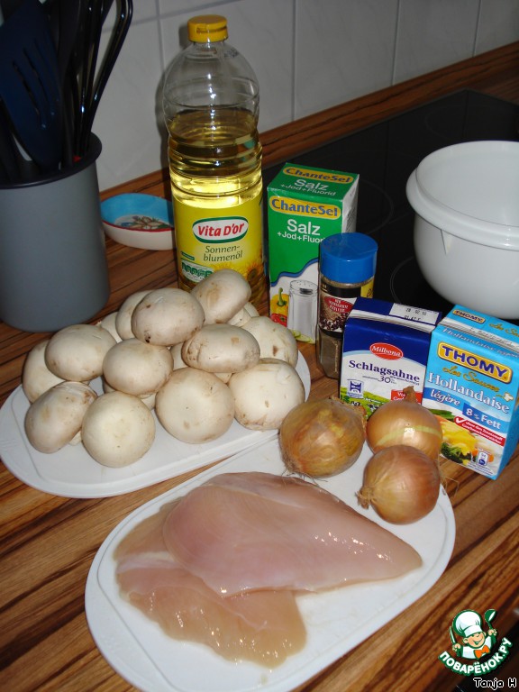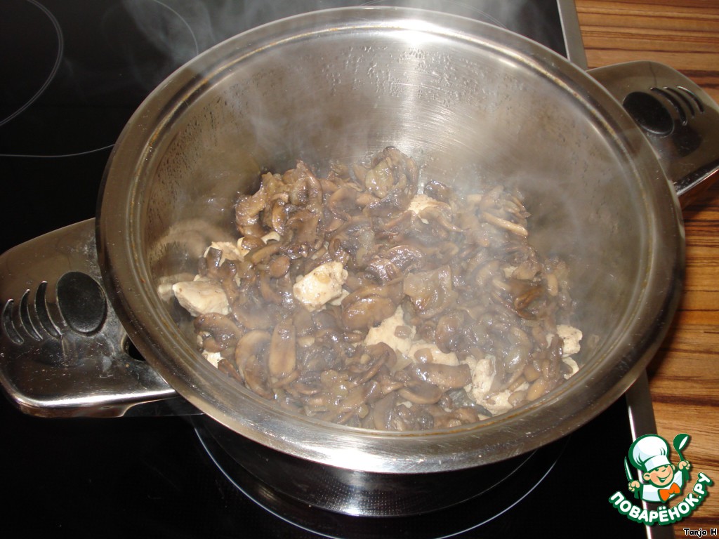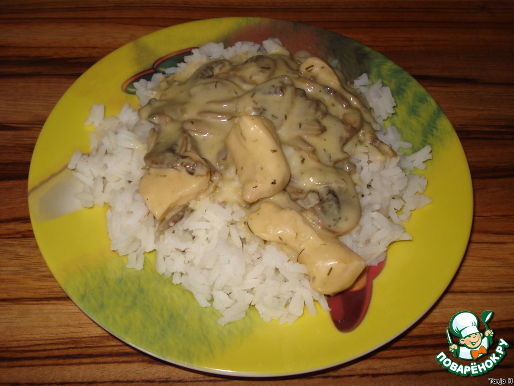 Грибной соус с куриным филе к рису