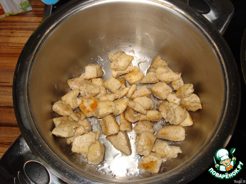 Куриное филе промываем и режем кубиками.