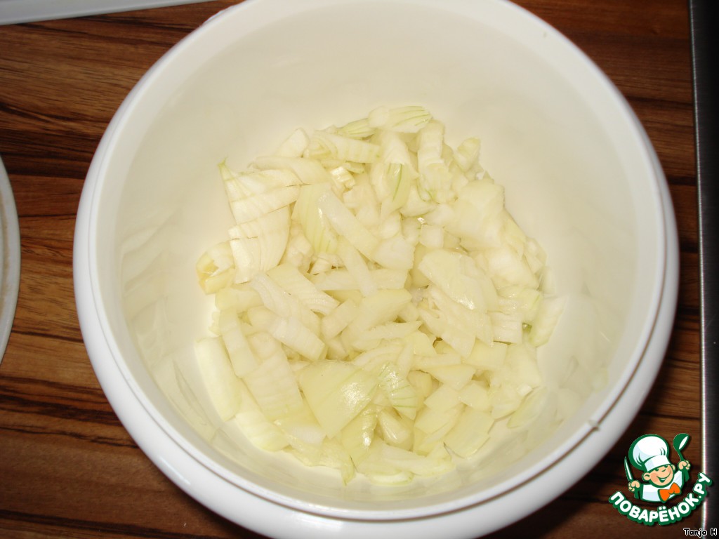 Режем лук мелко.