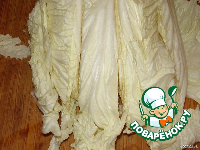 капусту с начала разрезать так, как на фото, а потом нашинковать. В начале листа примерно 1см. А чем ближе к концу, тем уже примерно доходит до 0,5 мм.