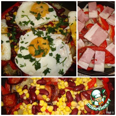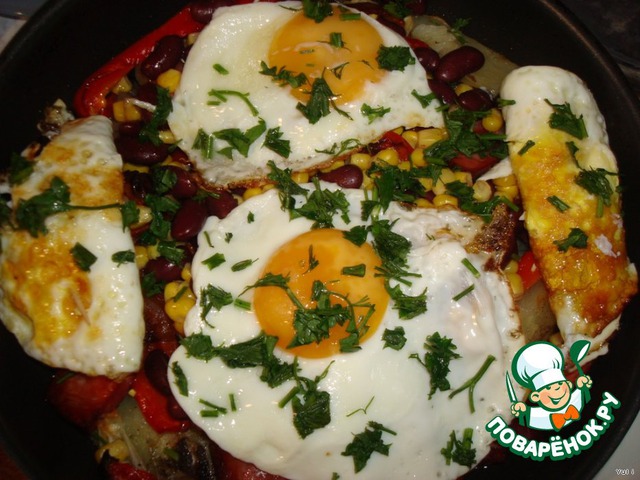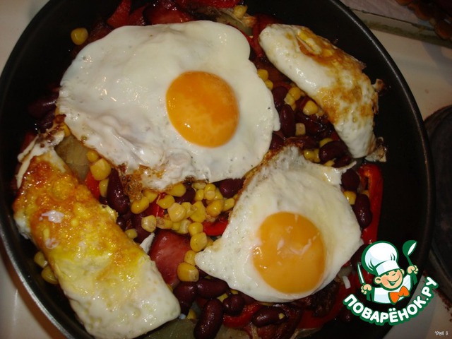 Поджарить из яиц яичницу-глазунью.
