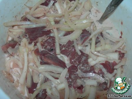 Печень солим, смешиваем с луком и заливаем молоком, оставляем для маринования минут на 20-30