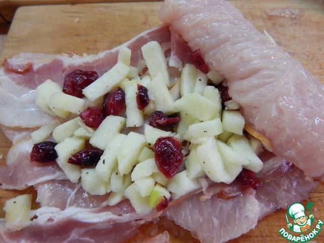 Рецепт "Рулет из индейки с яблоками и клюквой":
