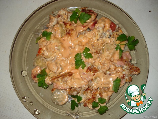 | Когда только муж начал готовить это блюдо, я у него спросила, будет ли это вкусным. На что он ответил: "А как же, это же я готовлю!!!". Так что судите сами, можно ли было ему доверять продукты!!! |