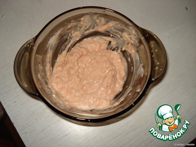 Натереть на мелкой терке сыр, добавить к нему майонез, кетчуп. Всё тщательно перемешать.