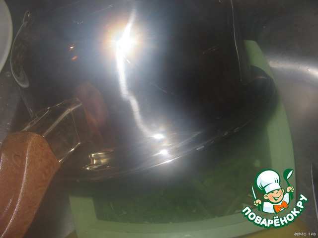 Фасоль отварить в кипящей подсоленной воде, минуты 3.