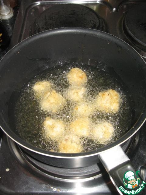 Возможно также взбрызнуть как следует шарики маслом и запечь в духовке - более диетический вариант. Но чтобы они не стали потом каменными, сразу после жарки сложить минут на 5 в небольшую кастрюлю под крышку.