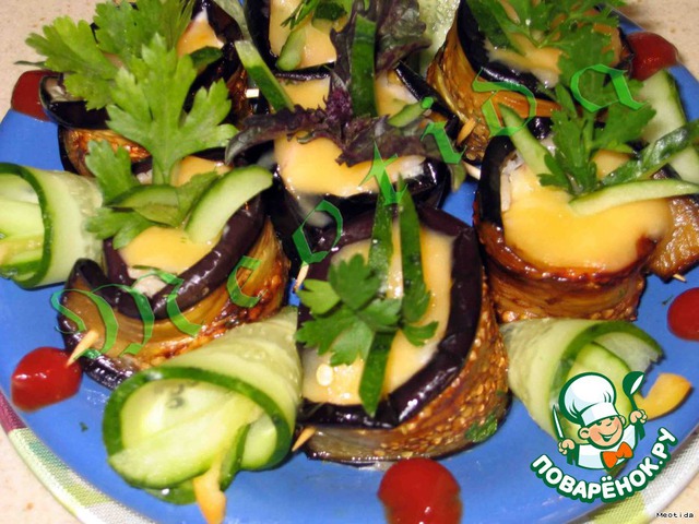 | опять мои любимые баклажанчики.... горячий гарнирчик к мясу, рыбе и курочке.. а можно и холодными кушать жареные баклажанчики, а в серединке рис с укропчиком, чесночком, помидоркой.. все это под сырной шапочкой со свежими огурчиками.... остренько.. сочненько.. по-летнему... и для семейного ужина подойдет .. и на праздничный стол не стыдно поставить |