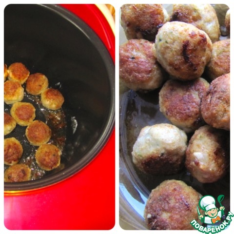 Включить режим "Поджаривание", в чаше мультиварки обжарить фрикадельки до золотистого цвета на растительном масле с двух сторон. Выложить на блюдо.