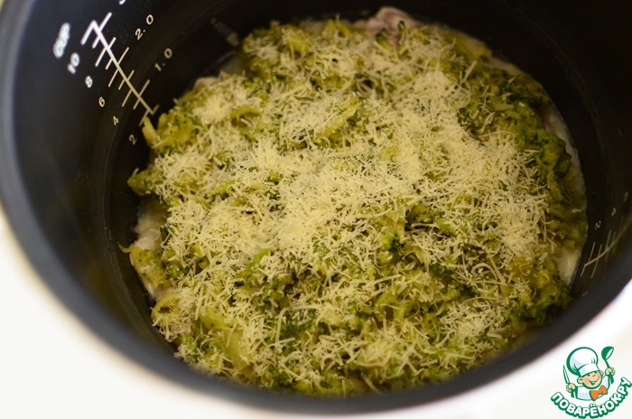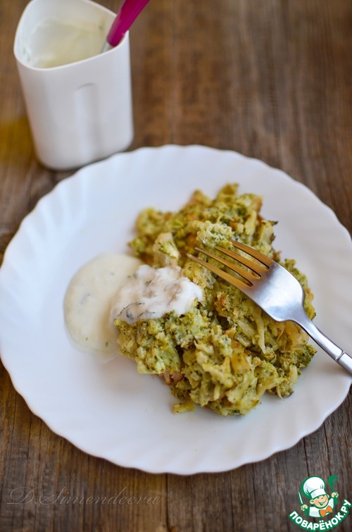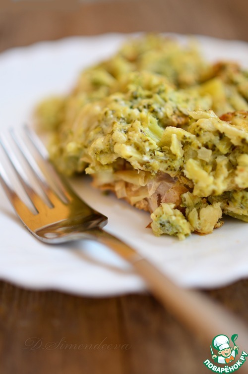 Рецепт "Запеканка из нежной курочки в йогурте под шубкой из брокколи и пармезана":