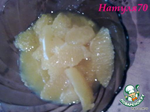 Очищаем апельсин, делим на дольки. Пленочек быть не должно
