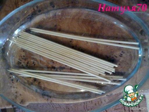 Сначало надо замочить шампурики в холодной воде на 15-20 минут
