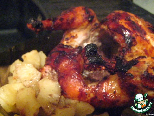 | Получается очень нежное, элегантное мясо, ароматное, с легкой кислинкой и тонкой ноткой ананаса и имбиря. Вкусное и очень хрустящее! |