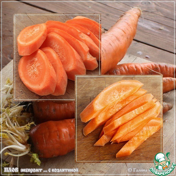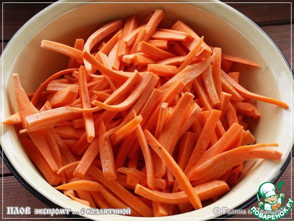 Морковку нарезал брусками, но для ускорения, а что? – экспромт же, резал вот так. Сначала на кружочки, а потом уже «в полосочку».