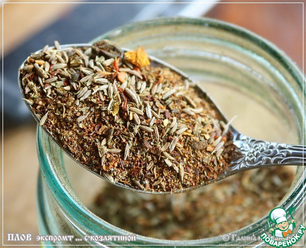 Из специй – приправ у меня оказалось только смесь для плова. Так кроме зиры и щафрана, как мне ощутилось, есть еще перцы какие-то, барбариса немного и что-то еще … пахучее. Вообще то я такими смесями не пользуюсь, но … что нашлось. Ну, вот и все собственно. Ну и соль, конечно, еще была и масло растительное. Самое обычное, подсолнечное. Без экзотики обошелся.