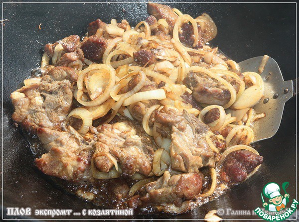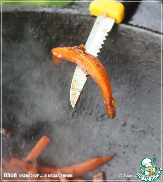 Огонь держим под казаном сильный, шумовкой работаем постоянно. Не приведи, Создатель, мясо подгорит. Никак нельзя допустить.