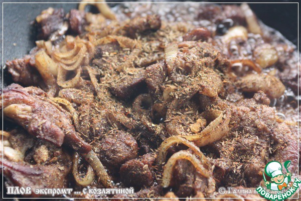 Мясо. В холодильнике нашлась козлятинка молоденькая. Правда, прошлогоднего, извините, урожая. Нога, шейка и ребрышки.