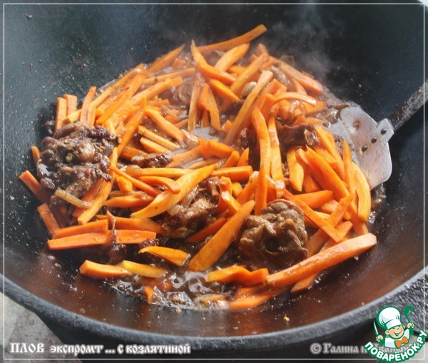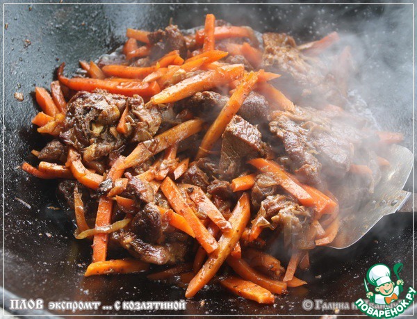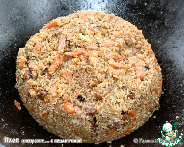 | Вот такой получился плов. Почему экспромт? Да потому что не готовился я специально, что, в принципе, неправильно. То есть, не ездил на рынок, не покупал специально ничего. А приготовил из того, что было, что называется, «под рукой». Скучно стало … вот и приготовил. |
