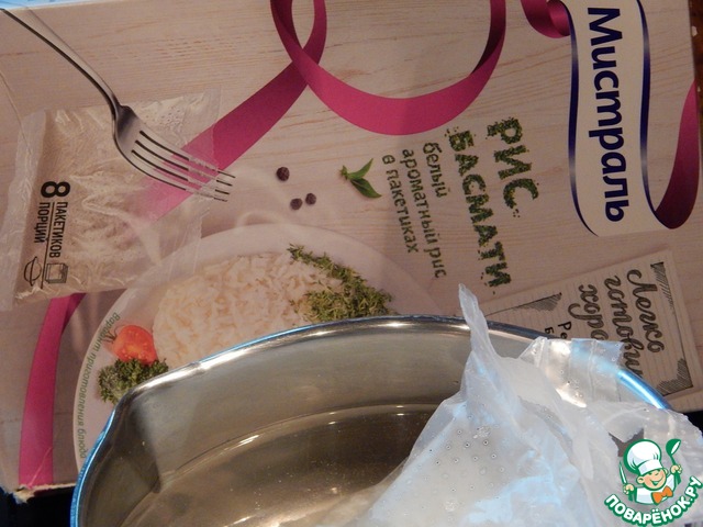 Отвариваем рис в пакетиках в подсоленной воде 15 минут.
