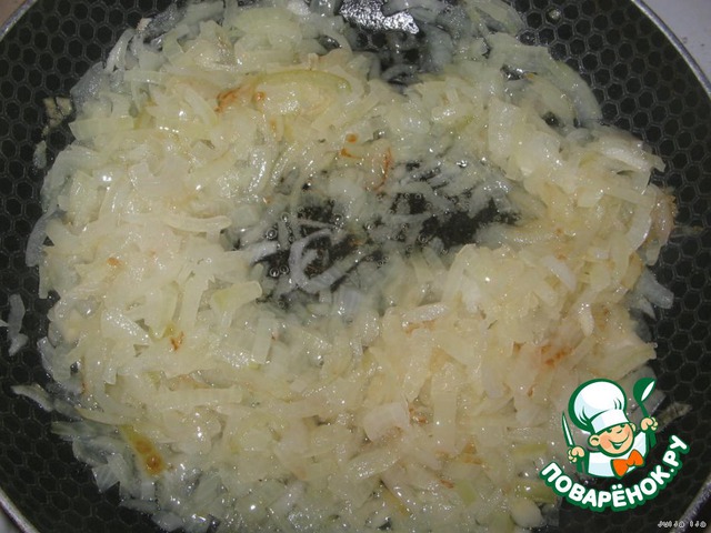 Лук, нарезанный соломкой, обжарить до золотистого цвета на сливочном масле (можно и на растительном, но на сливочном вкуснее).