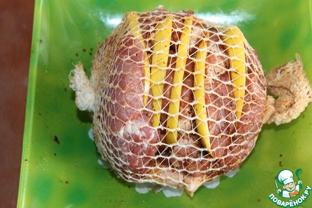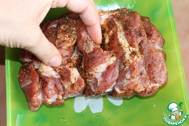 Рецепт "Свиная шейка запеченая с айвой и мятой в мультиварке":