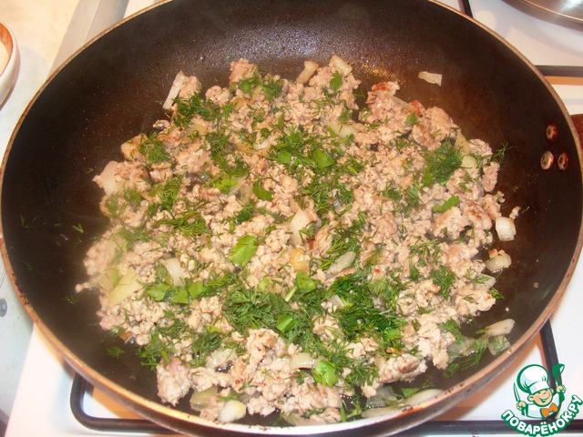 Обжарить на растительном масле фарш и лук до готовности.