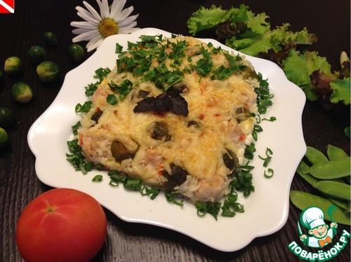 | Запеканка – древнее блюдо русской кухни. Ее готовили даже во времена Киевской Руси из жидкого теста с различными начинками. В современной кухне вариаций запеканок море. Сегодня я выбрала брюссельскую капусту и куриный фарш. Ее маленькие кочанчики красиво смотрятся в блюде. Блюдо получается вкусным и сытным, и что не мало важно - легким и низкокалорийным. |