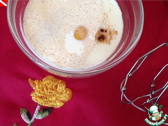 Готовим заливку: смешиваем сливки, желток, растительное масло, специи, соль.