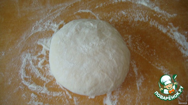Пока мясо варится, замешиваем пресное тесто и даём ему настояться