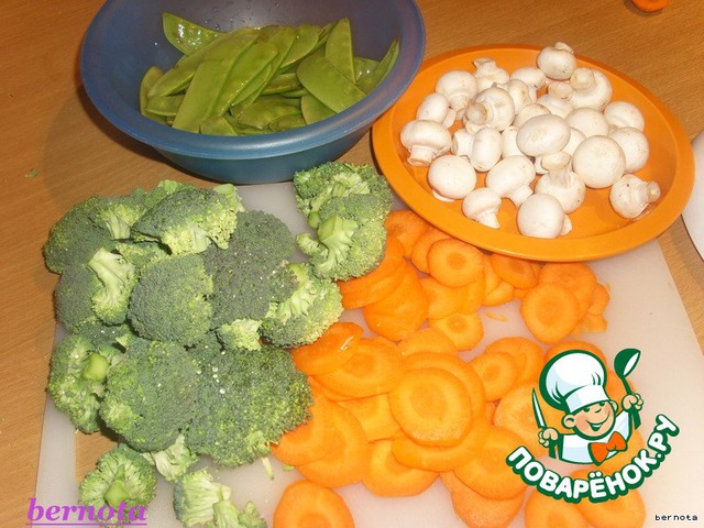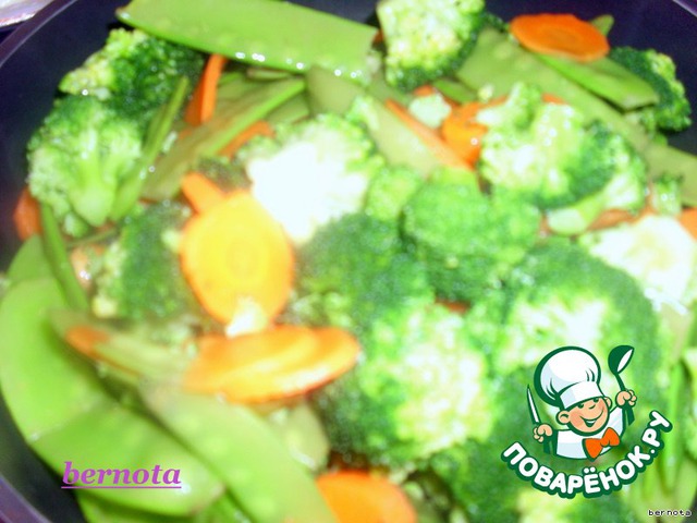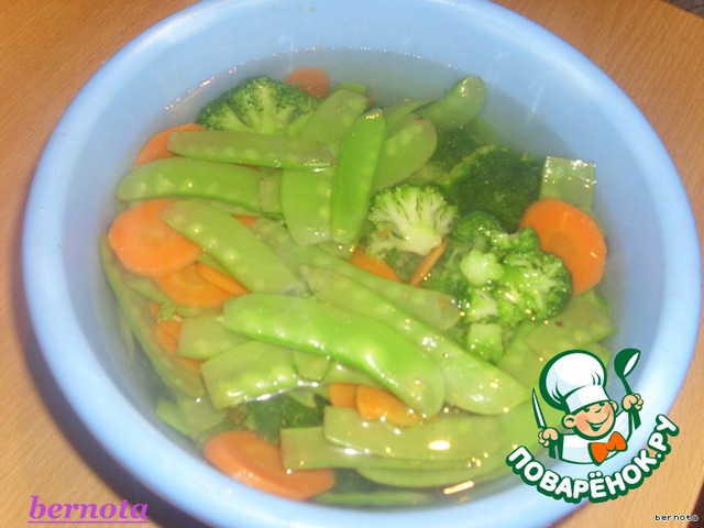 когда вода закипит, закладываем брокколи и морковь и варим 4 мин.