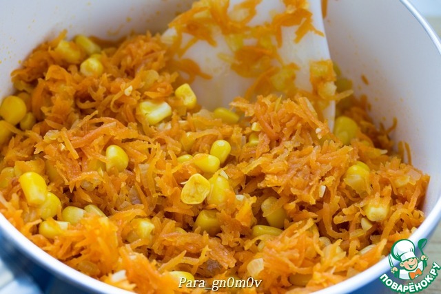 6. Перемешать обжаренные морковь, лук, кукурузу и шафран.