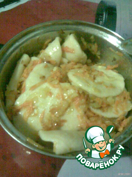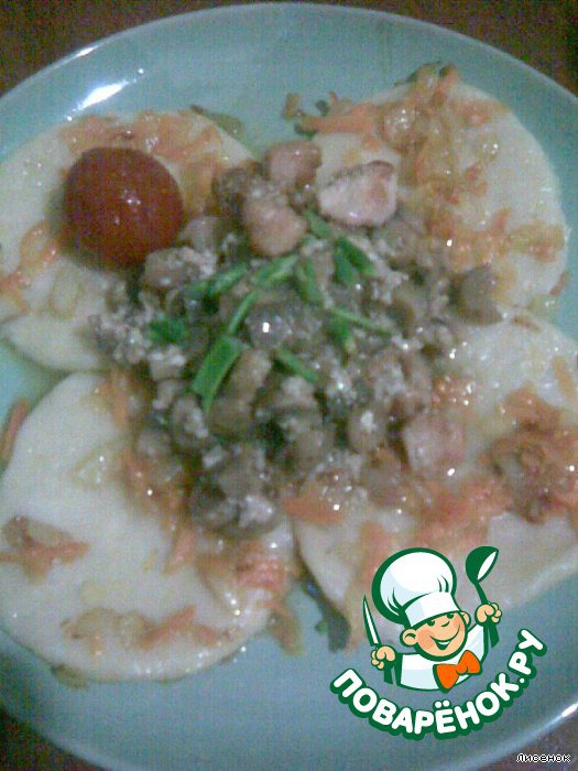 Готовые лепешки пересыпать зажаркой и перемешать, я это делала в кастрюле)