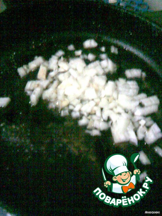 Посыпаем сковородку специями (соль, перец, имбирь), наливаем масло
