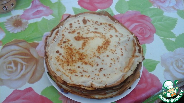 Первый блин печем на большом огне без добавления масла (оно у нас в тесте), затем убавляем огонь на минимум и выпекаем остальные, не отвлекаясь...