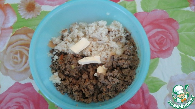 Остывшую печень пропускаем через мясорубку, добавляем сливочное масло, ломтик батона. Тщательно вымешиваем.