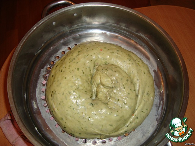 Закатать в рулетик и свернуть улиткой (отсюда и название - завертушка). Варить в мантоварке 40 минут. Подавать с овощами. У меня маринованный перчик. Приятного аппетита!