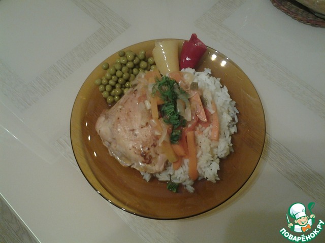 Плотно закрываем крышкой, делаем медленный огонь и больше не открываем 40 минут вообще! Пускай томятся. В это время занимаемся спокойненько гарниром. Я люблю с курочкой рассыпчатый рис, его и приготовила.
