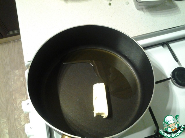 В глубоком сотейнике разогреваем масло сливочное и оливковое.