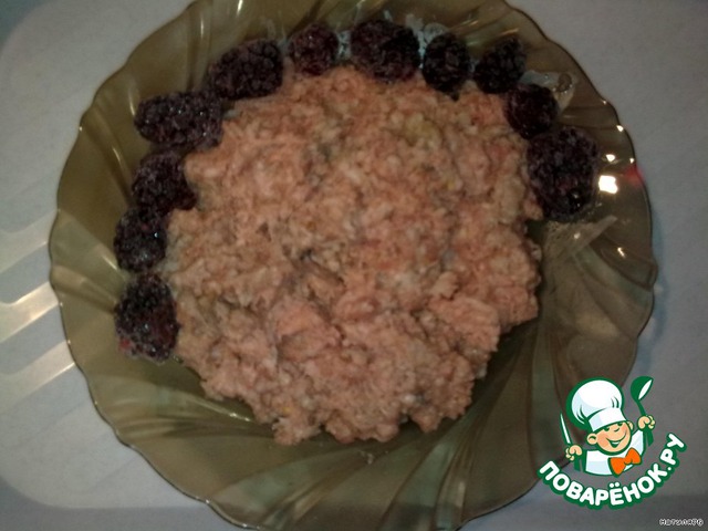 Сверху в фарш вдавливаем 1/4 часть ягоды.