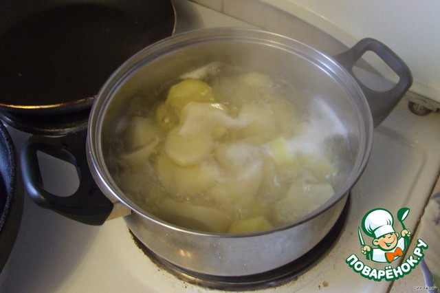 Выкладываям картофель в кастрюлю и варим на медленном огне до готовности