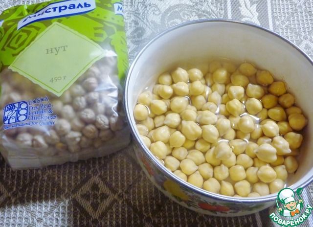Нут замочить на ночь. Я взяла нут ТМ "Мистраль".