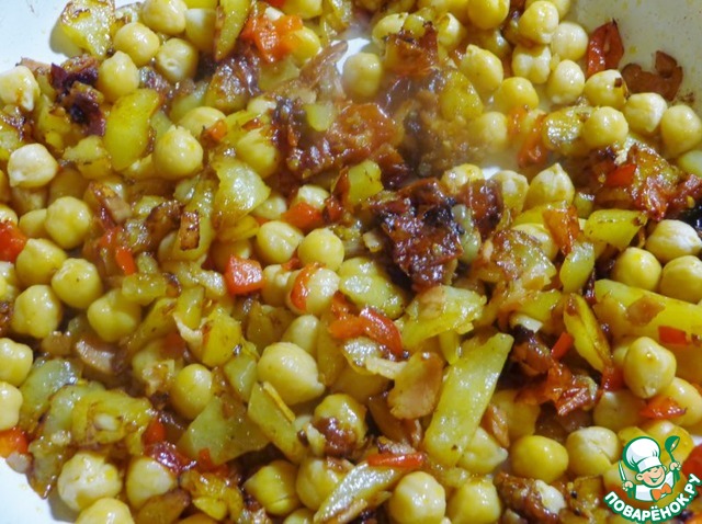 | Картошка получается очень вкусная и сытная. Прекрасная альтернатива обычным гарнирам. Подача получается порционная, смотрится очень красиво и начинка - ну просто очень вкусная: вяленые томаты, бекон, сыр и нут. Ну как это может быть невкусно? |