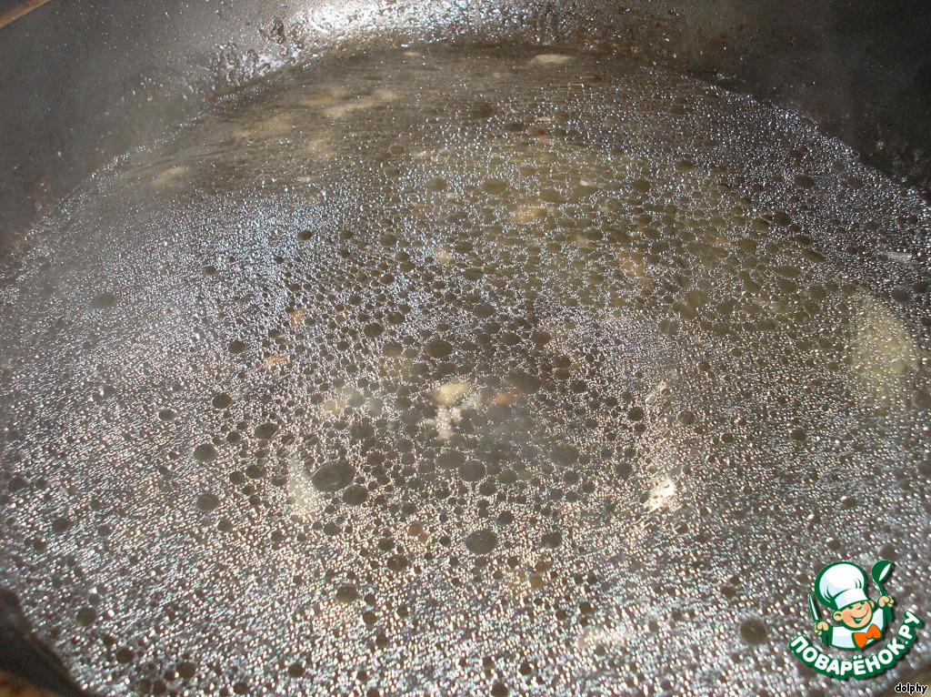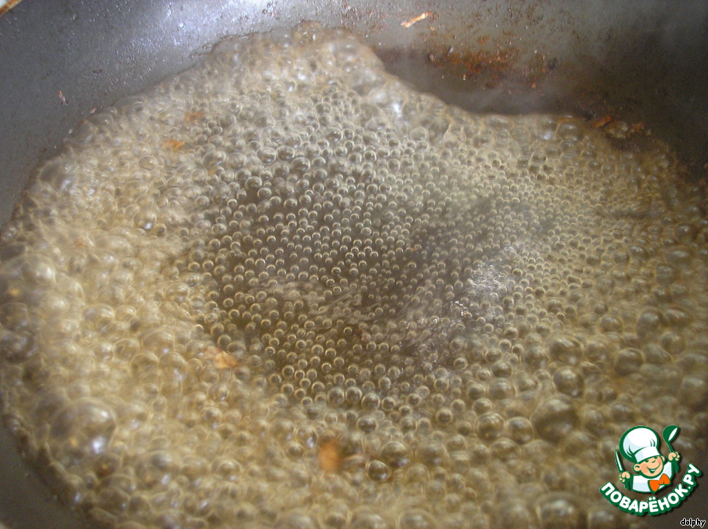 В сковороду вылейте белое вино и соскребите все поджарки, образовавшиеся ранее. Уварите до 1 ст.л.