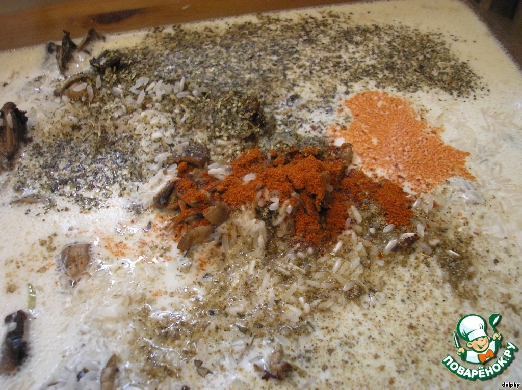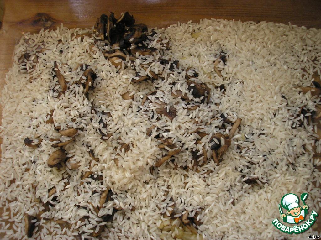 В форму для запекания высыпьте рис.